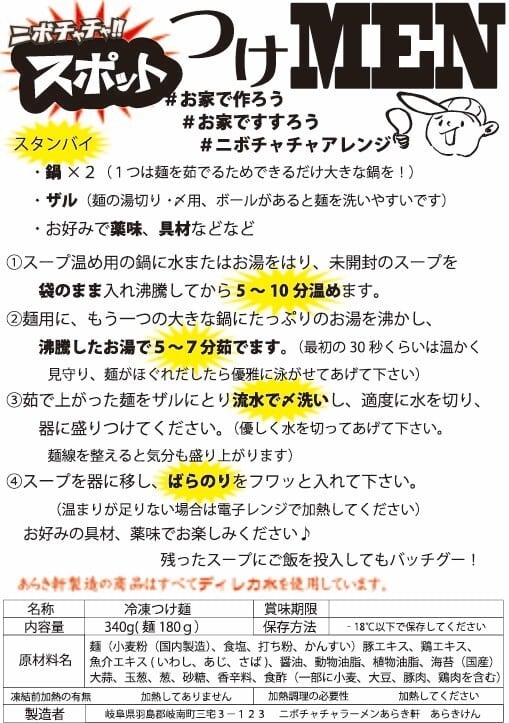北海道の地粉十割使用の自家製麺。 あっさり煮干 × まろやか背脂のつけ汁 × ほんのりガーリックのアクセント。 麺もつけ汁もスポット仕様。お店では味わえない専用仕立てです。 ※具材は入っておりません。お好みでお楽しみくださいませ。